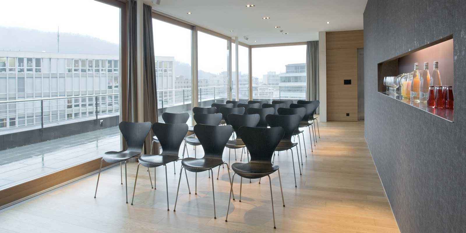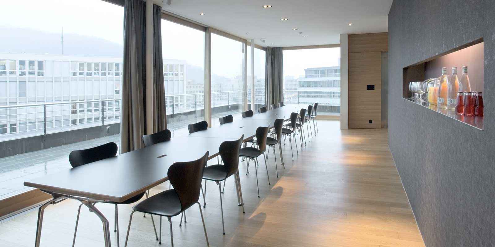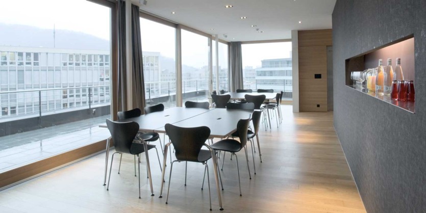Die Attika im 5. Stockwerk bietet ideale Voraussetzungen für Präsentationen,