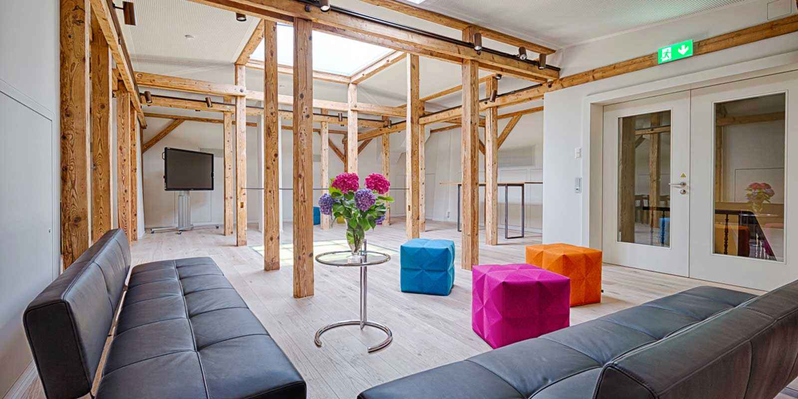 Villa Boveri offers eleven historical and modern meeting and seminar rooms for 8 to 20 people, some of which can be combined and create a special atmosphere. The unique creative space on the top floor with visible beams, ample space and unique lighting effects is a highlight. The offer is supplemented by stylish rooms on the ground floor, a terrace, the garden room and the extensive park – ideal for parties and social events.