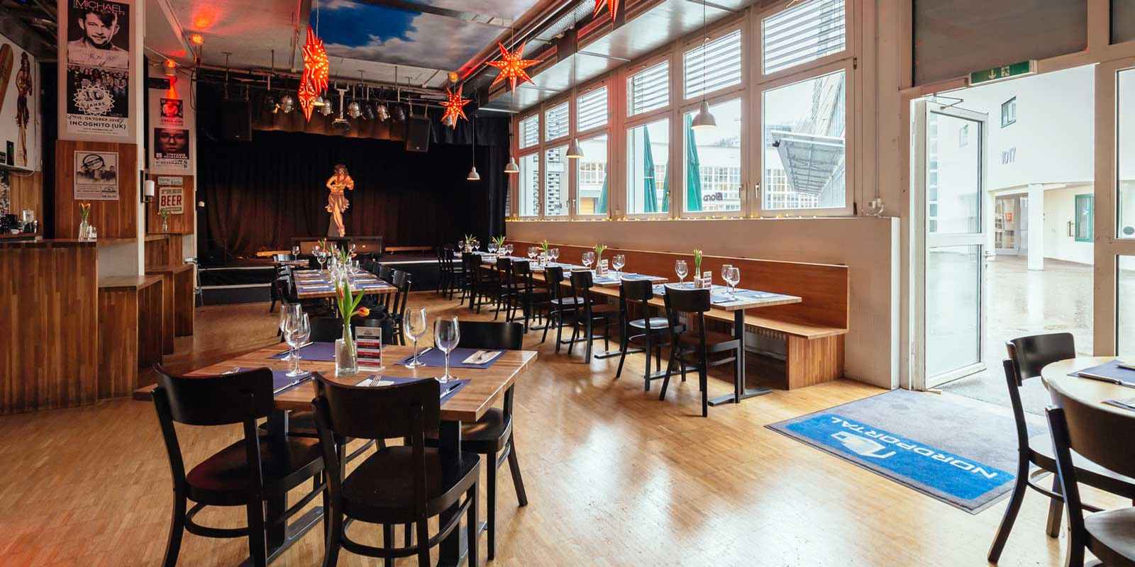 The Nordportal is a cultural, event and party location in Baden. The hall can accommodate up to 1,200 people and, thanks to a professional sound system, enables concerts of high acoustic quality. For those who prefer a more intimate atmosphere, the Fjord restaurant at the Nordportal provides